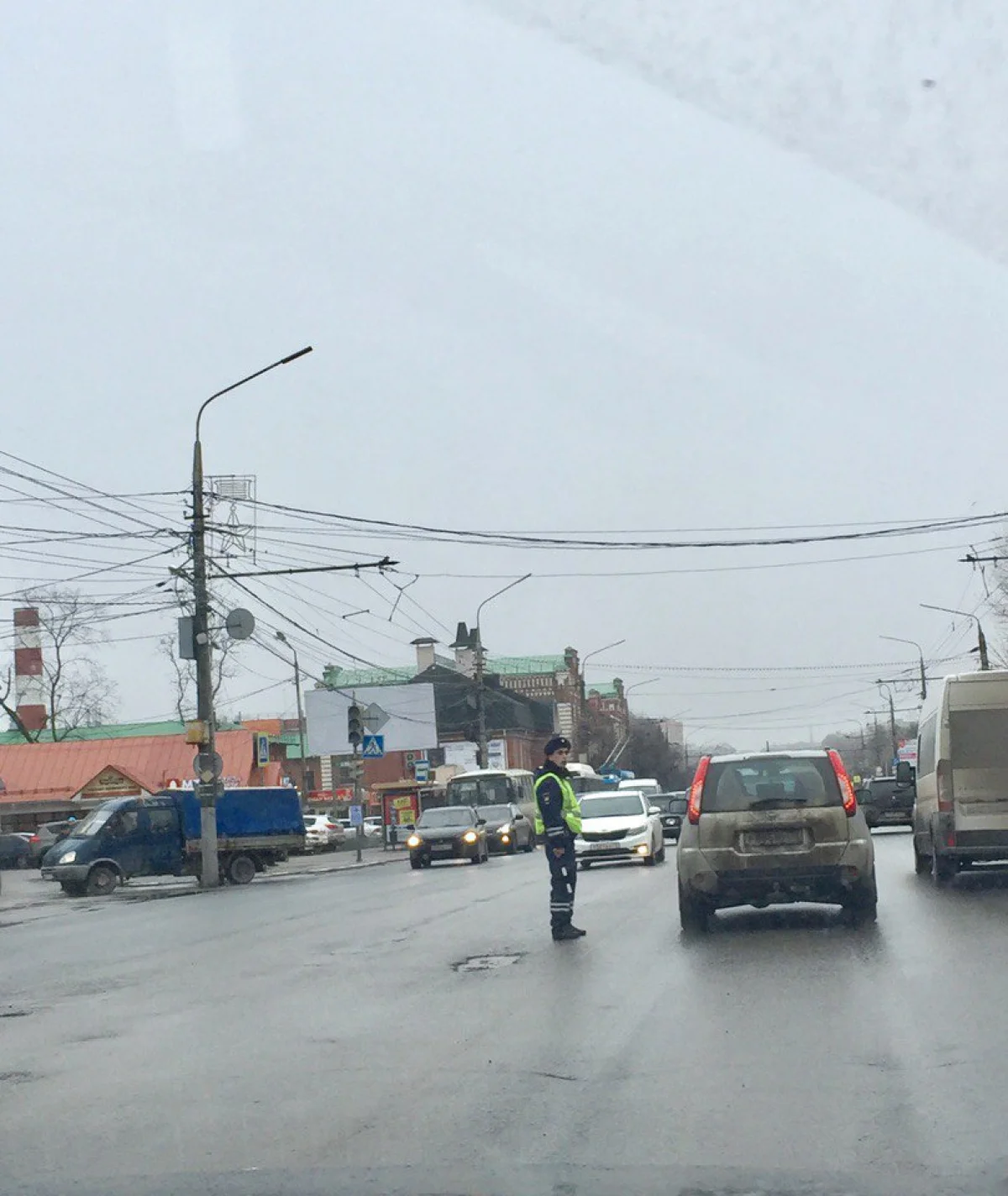 На проспекте Ленина в Туле вместо светофора работает регулировщик