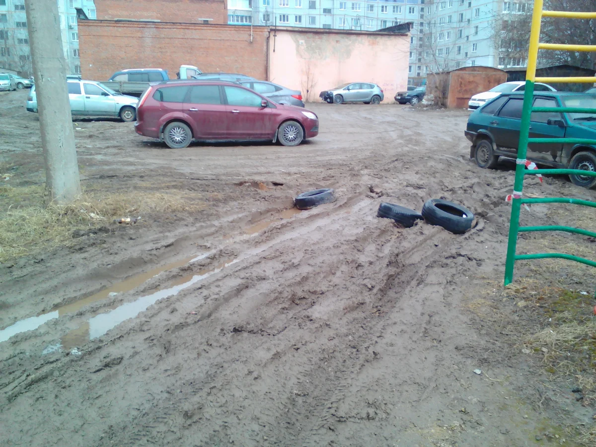 И действительно, на фото видно сильное загрязнение и следы от машин. «Оставьте нашу детскую площадку в покое!» - восклицает она. Отметим, что такая проблема стоит в большинстве дворов нашего города.