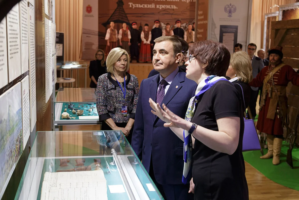 21 марта в здании Дворянского собрания прошёл Тульский культурный форум. Перед началом пленарного заседания Алексей Дюмин и заместитель Министра культуры РФ Алла Манилова осмотрели выставку «Города Большой засечной черты. Тульский кремль».