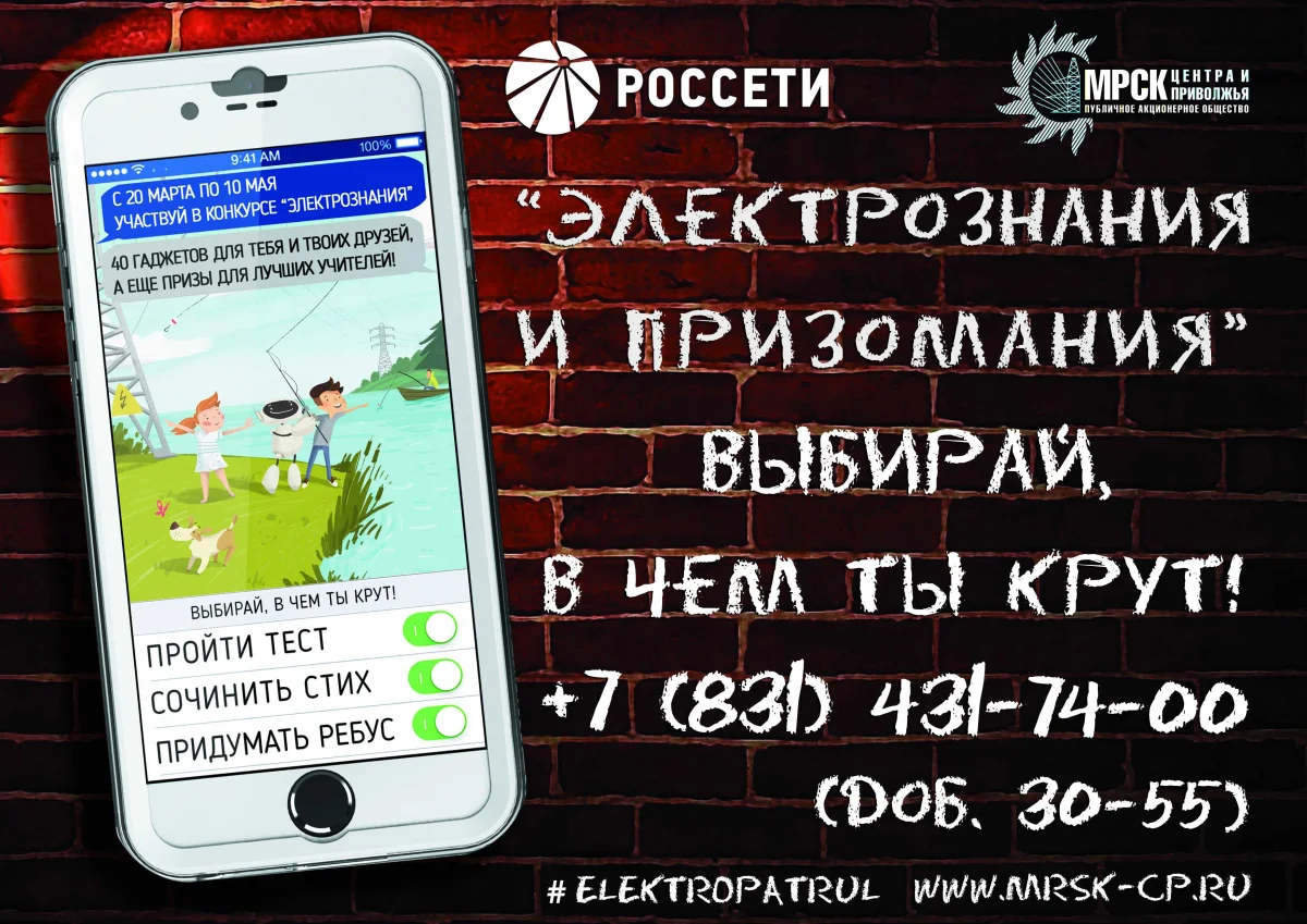 Подробная информация о конкурсе доступна на сайте ПАО «МРСК Центра и Приволжья»: http://www.mrsk-cp.ru/for_consumers/electrosafety_rules/special_projects/ и в группе ВКонтакте: https://vk.com/elektropatrul.