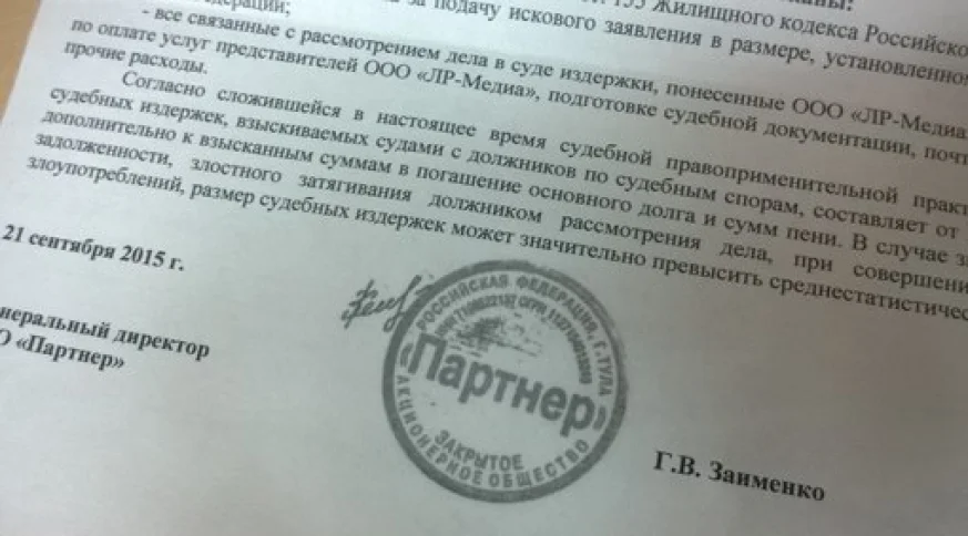 Как рассказали сами получатели уведомлений, никаких долгов у них перед ЗАО "Партнер" нет