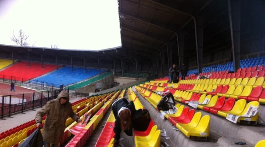 Ребята помогали очистить трибуны от грязи