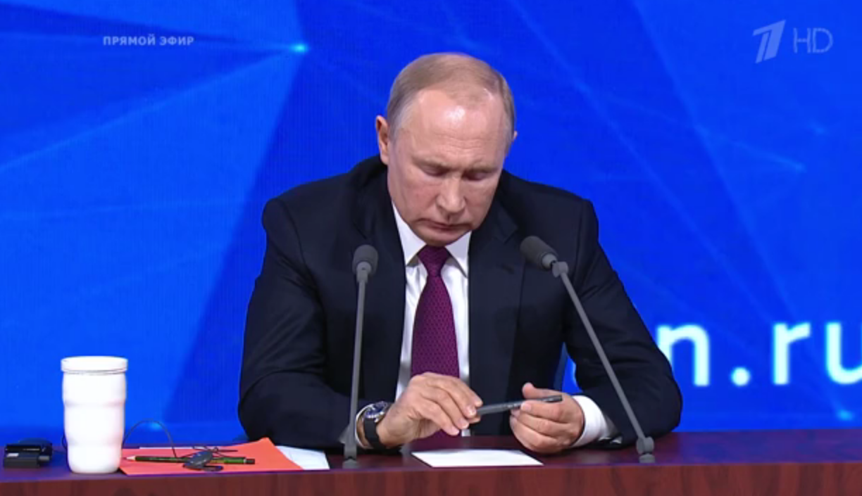 Владимир Путин начал конференцию с опозданием на несколько минут.