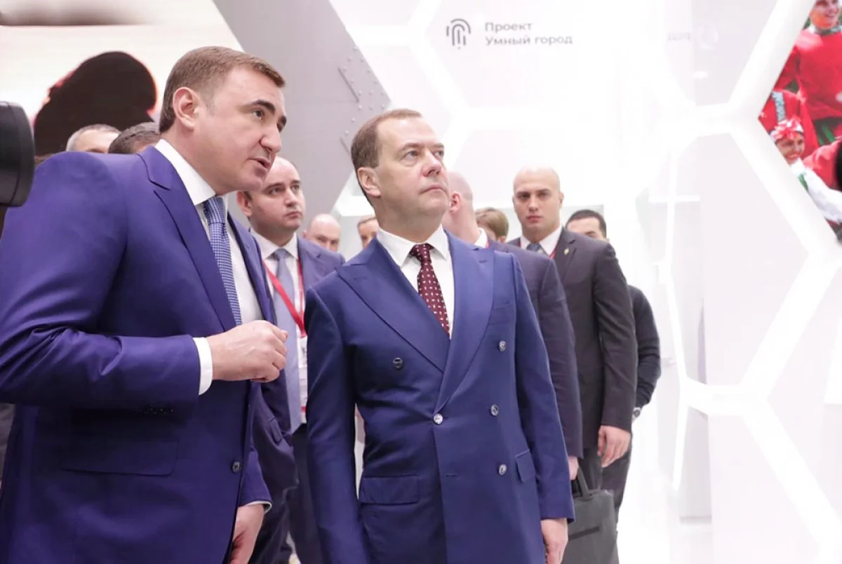 Председатель Правительства РФ Дмитрий Медведев посетил стенд Тульской области. 14 февраля в Сочи начал работу Российский инвестиционный форум.