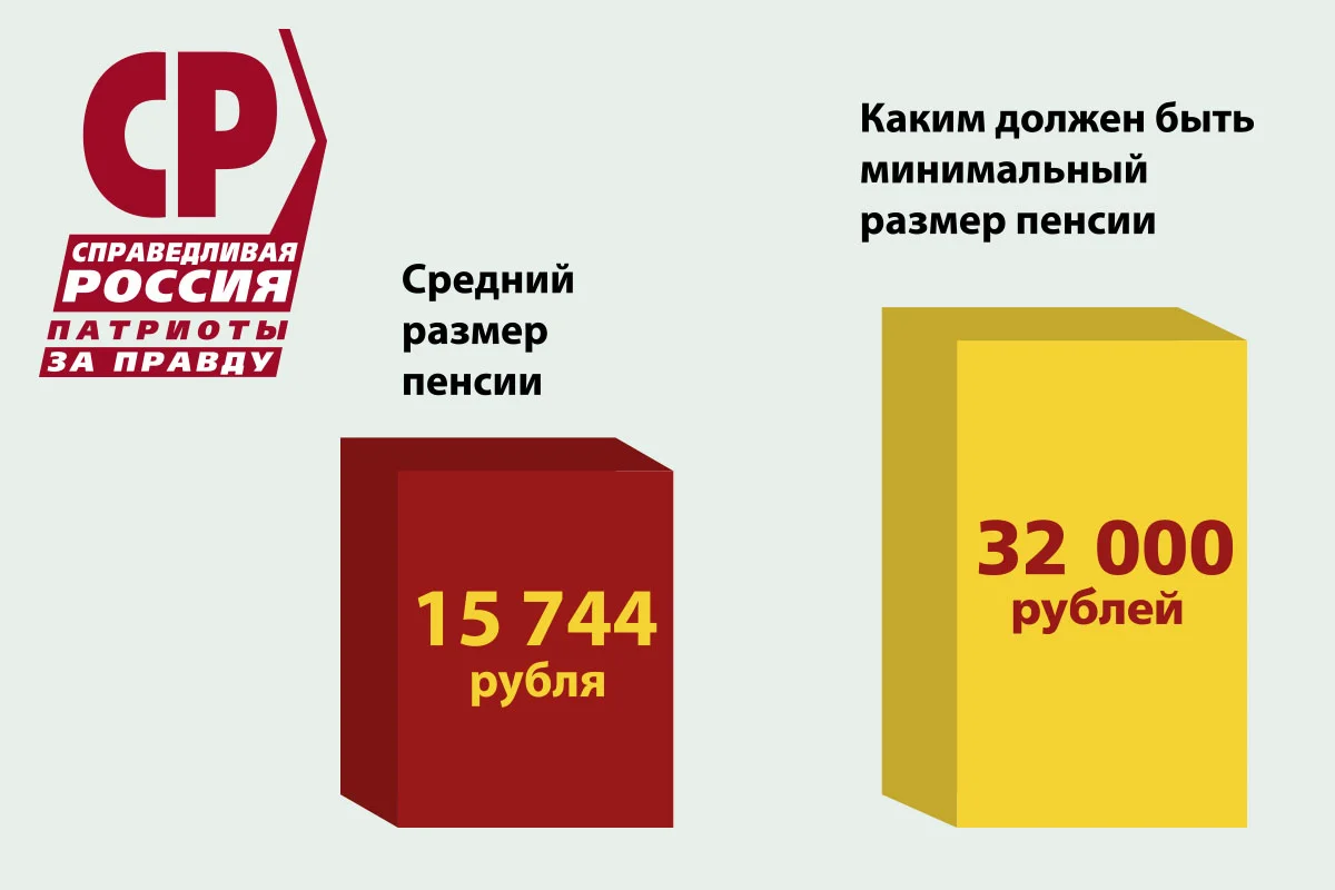 Как уточнил член Центрального Совета «СПРАВЕДЛИВОЙ РОССИИ – ЗА ПРАВДУ» Александр Бычков, партия также предлагает вернуться к прежнему пенсионному возрасту и установить минимальный размер выплат по старости не ниже 32 тыс. рублей.