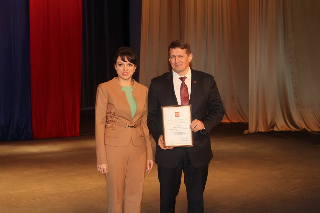Она вручила главе администрации города Евгению Авилову Благодарность Совета Федерации Федерального собрания РФ.