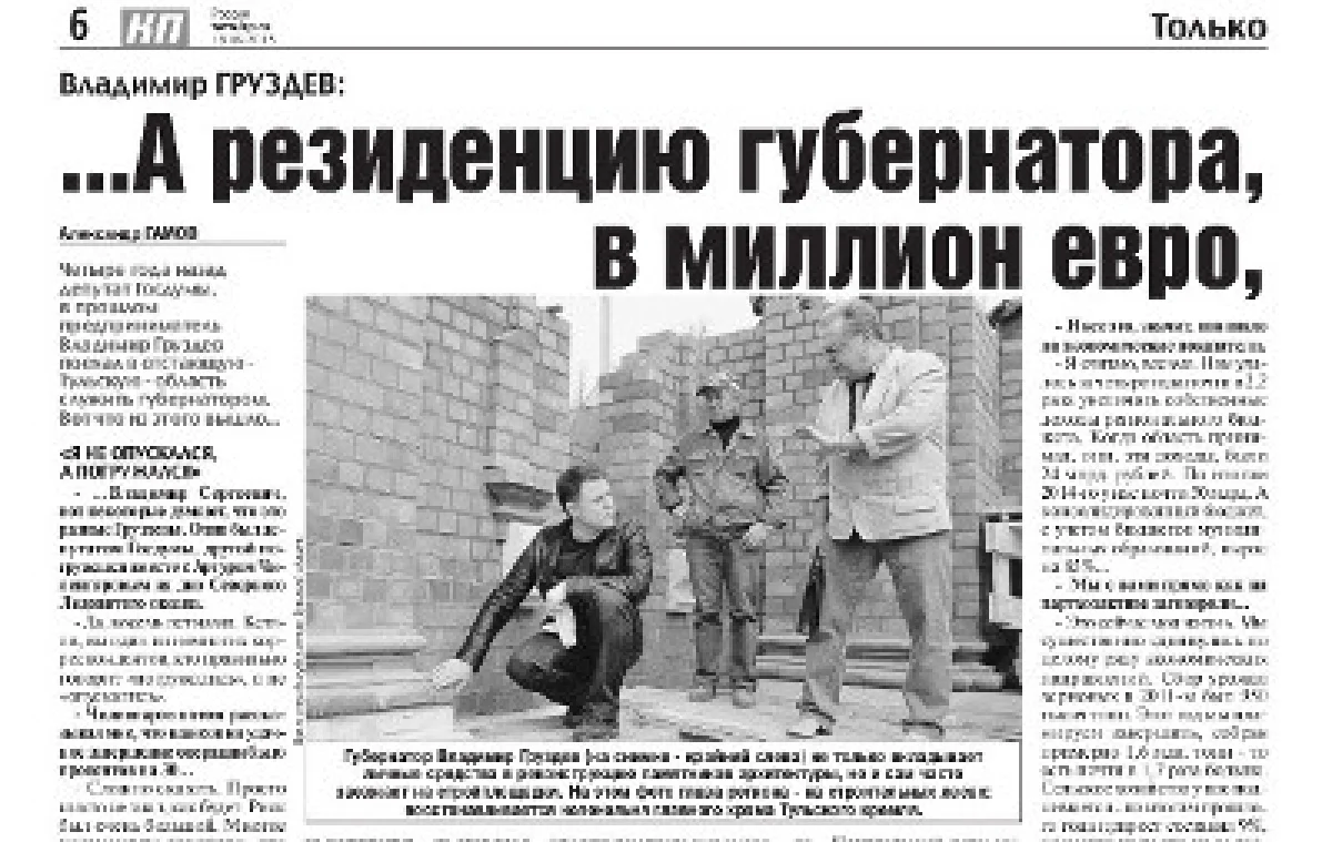 18 сентября в газете "Комсомольская правда", а также на сайте издания можно будет прочитать эксклюзивное интервью главы тульского региона Владимира Груздева.