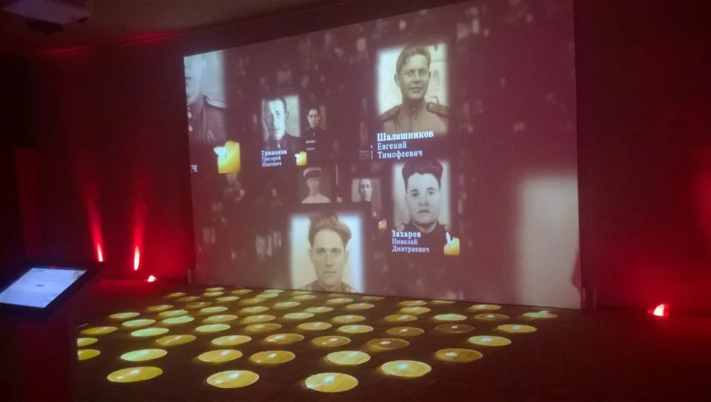 Внутри мемориала защитникам неба отечества будет экспозиция в память об участниках Великой Отечественной войны. Пока она только планируется. В рамках военно-патриотического проекта «Живи и помни» каждый пришедший отдать дань памяти героям войны сможет открыть электронную Книгу Памяти. Информация в ней будет представлена в виде мультимедийных инсталляций. Кстати, экран в зале уже установлен. На нем транслируют портреты героев Великой Отечественной войны, туляков. Перед экраном - проекции свечей - символ акции "Живи и Помни". Вдоль стен установлены символические лампы, напоминающие вечный огонь.