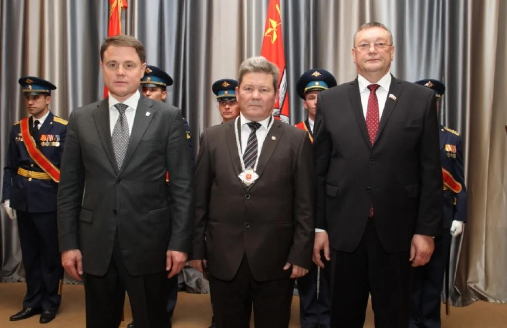 Во время торжественного собрания Владимир Груздев и председатель областной думы Сергей Харитонов вручили генеральному директору общества с ограниченной ответственностью «Новопетровское» Александру Комарову нагрудный знак, удостоверение, значок для повседневного ношения Почетного гражданина Тульской области.