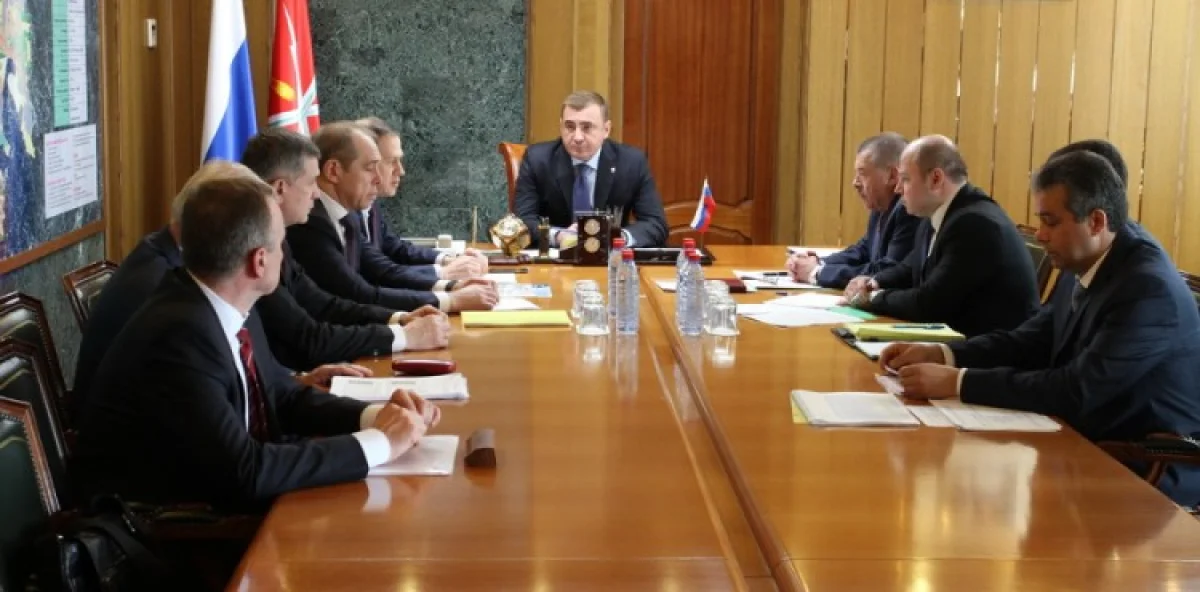 8 апреля временно исполняющий обязанности Губернатора Тульской области Алексей Дюмин провел рабочую встречу с руководителями ОАО «МХК «Еврохим».