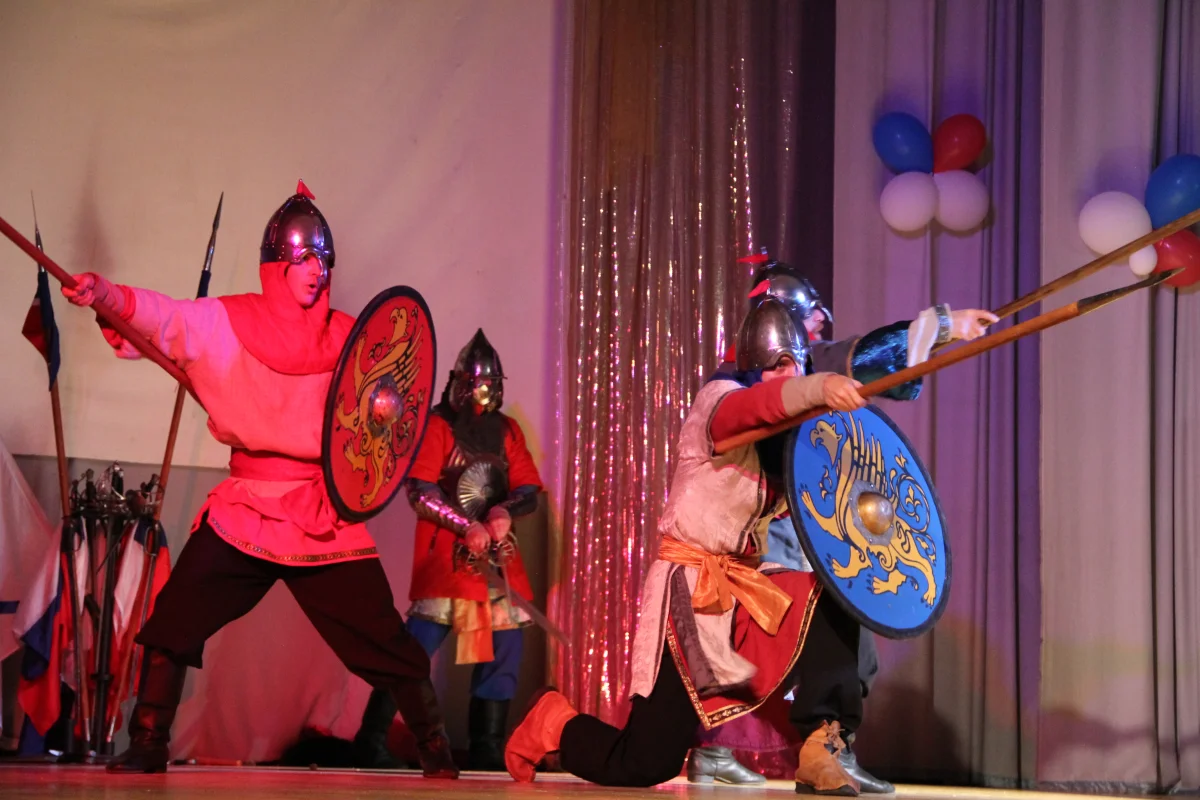 Это увлекательное шоу с элементами каскадерских трюков с холодным и огнестрельным оружием, яркой хореографией и эффектными историческими костюмами. В течение спектакля перед зрителями предстают древнерусские богатыри, солдаты и гардемарины эпохи Петра Великого, воины Отечественной войны 1812 года, советские солдаты и офицеры Великой Отечественной войны. Путешествие в героическую историю России никого не оставило равнодушным.