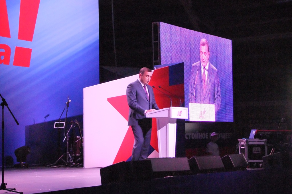 На сцене появились ведущие, которые предоставили первое слово, конечно, было предоставлено Алексею Геннадиевичу Дюмину: