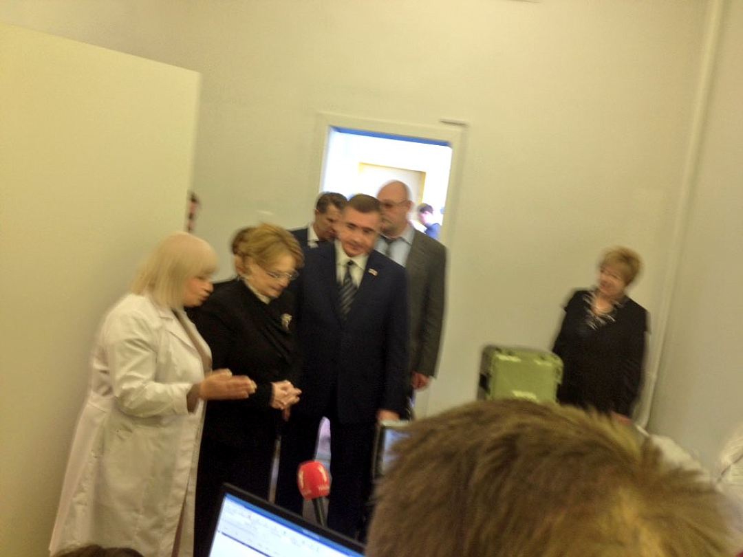 Вначале вместе с губернатором Тульской области Алексем Дюминым она посетила детскую поликлинику Городской клинической больницы им. Е.Г.Лазарева.