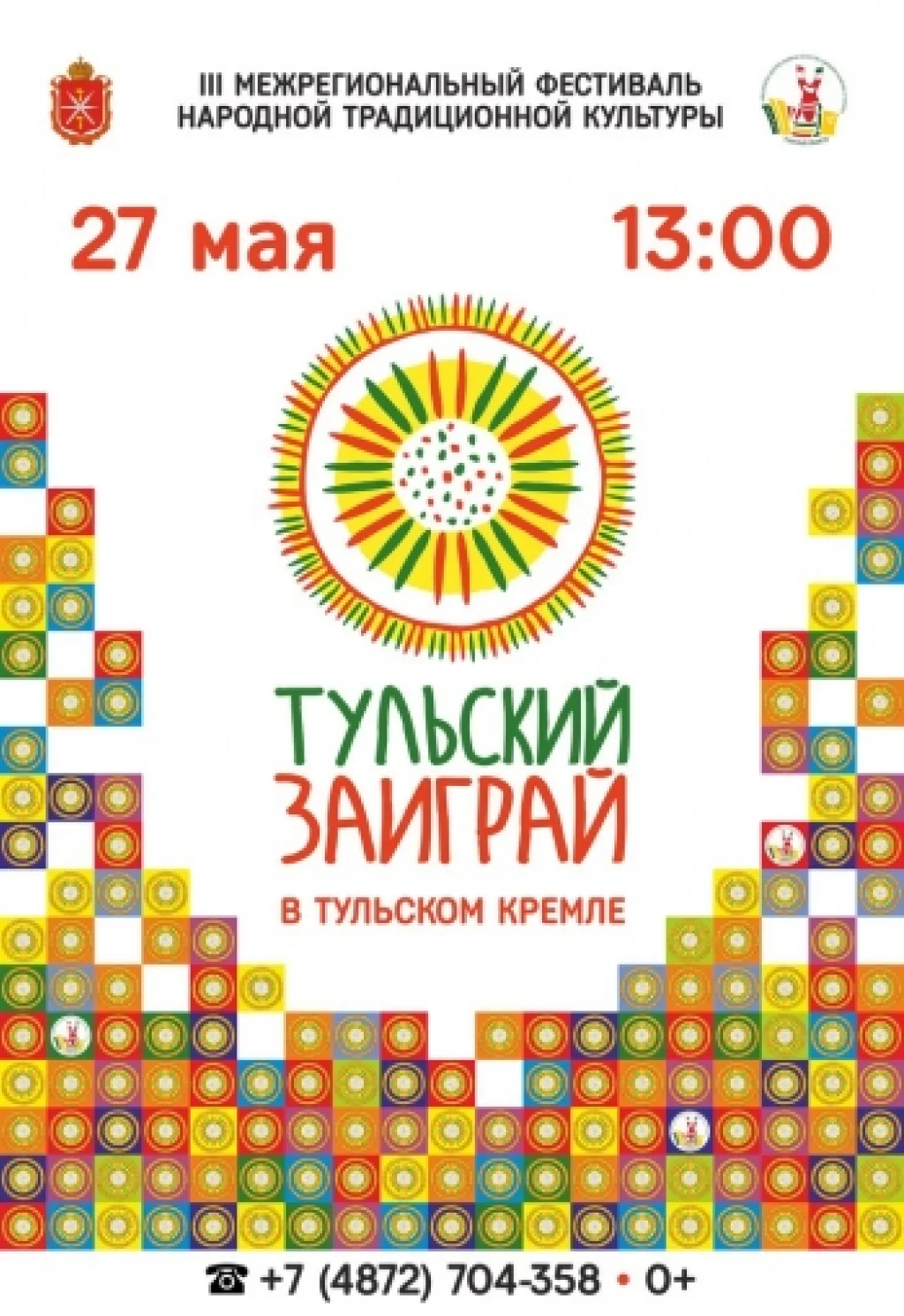 27 мая с 13 до 20 часов в Тульском кремле пройдет III Межрегиональный фестиваль народной традиционной культуры «ТУЛЬСКИЙ ЗАИГРАЙ», в котором примут участие мастера-игрушечники, гармонисты, плясуны, исполнители частушек, творческие семейные династии из более чем из двадцати регионов России.
