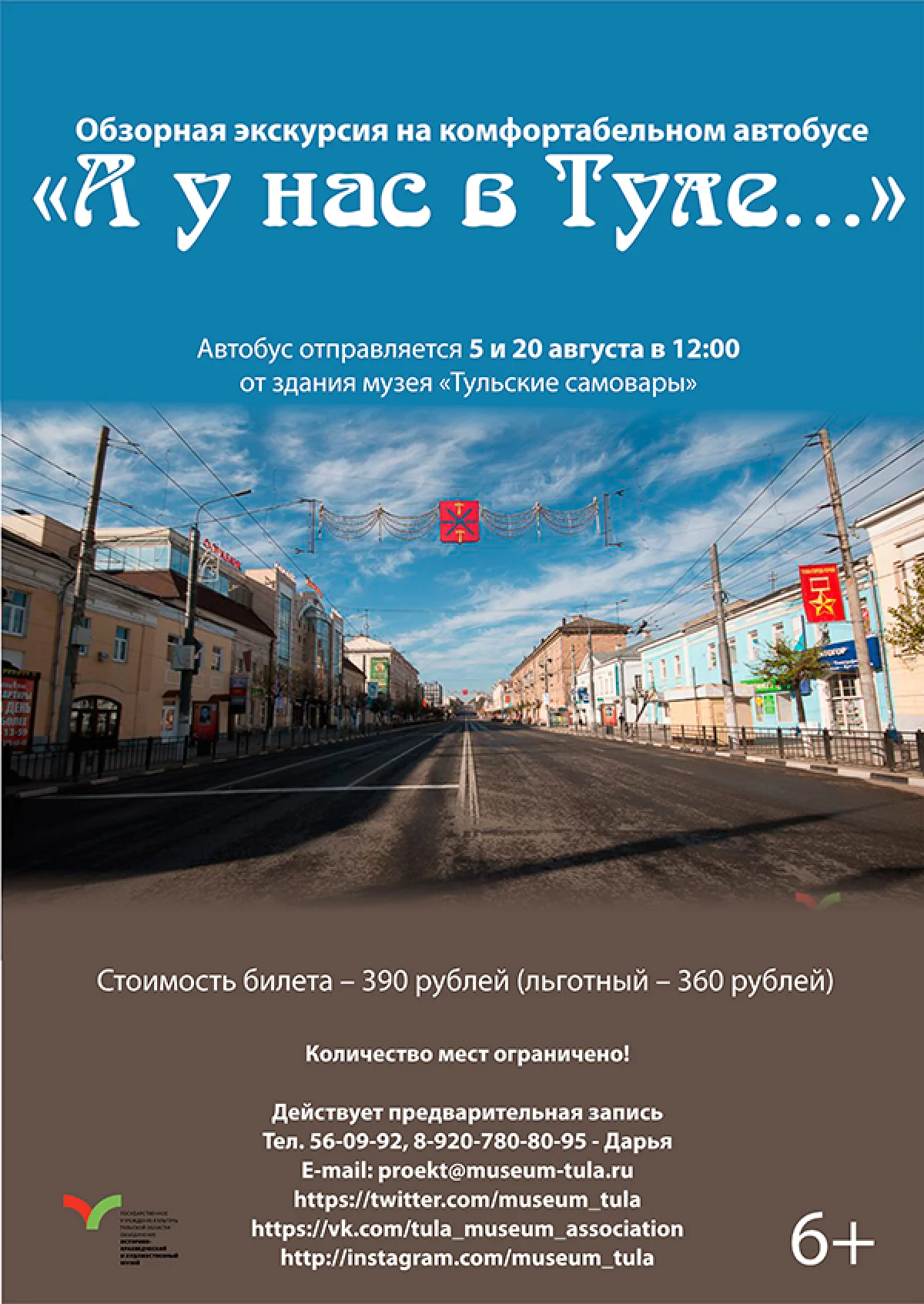 Тульское музейное объединение приглашает на обзорную экскурсию «А у нас в Туле…», которая пройдет 5 и 20 августа.