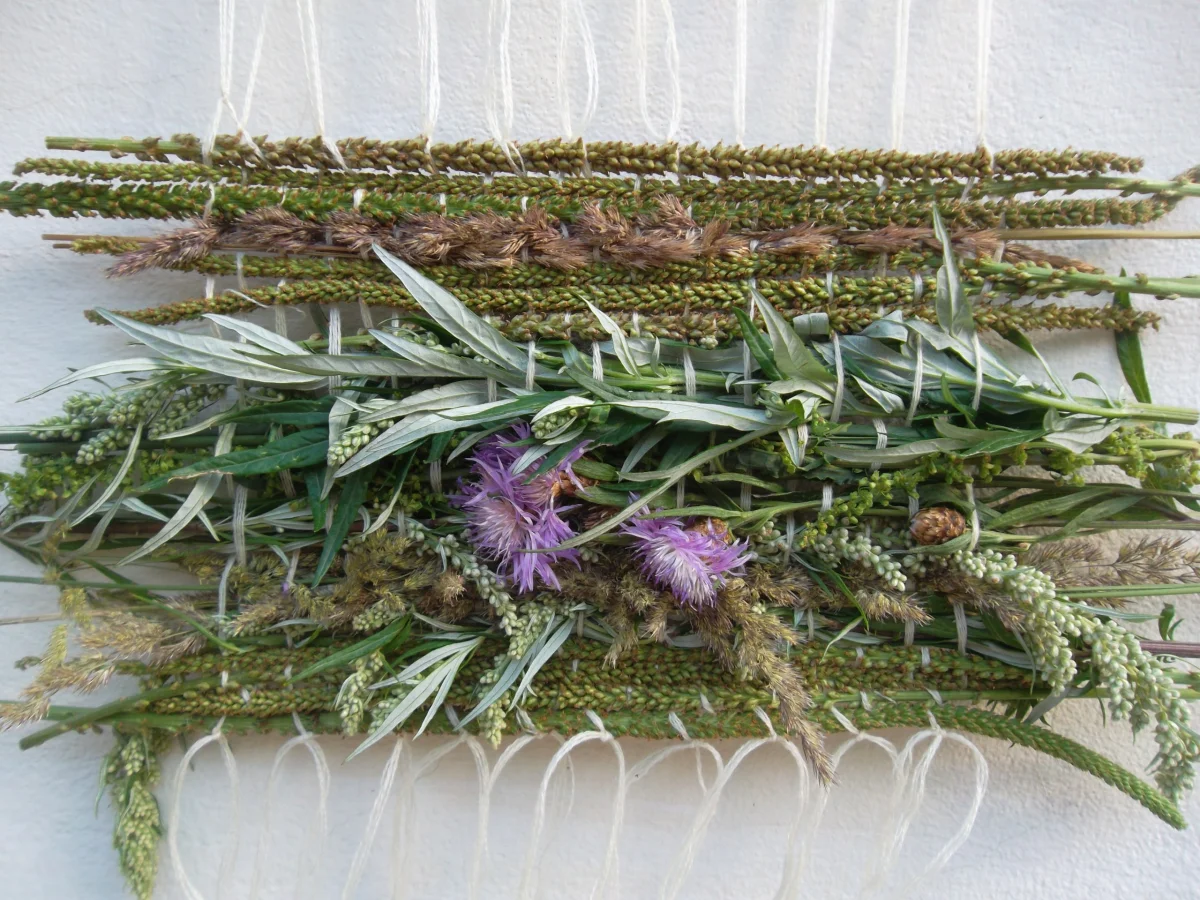 Участники мастер-класса, используя приёмы ткачества, сделают оригинальный гобелен из летних трав. Помимо художественного и эстетического значения, травяной гобелен несёт целебное, расслабляющее и успокаивающее значение. Такие изделия очень прочны, имеют долгий срок хранения (несколько лет). Если на гобелен не падает прямой солнечный свет, он прекрасно сохраняет свои цвета и не осыпается. Если сбрызнуть изделие из пульверизатора водой, усиливается его природный аромат. Гобелены из природных материалов оригинальны на внешний вид и с пользой могут использоваться в интерьере квартиры, дома, дачи.