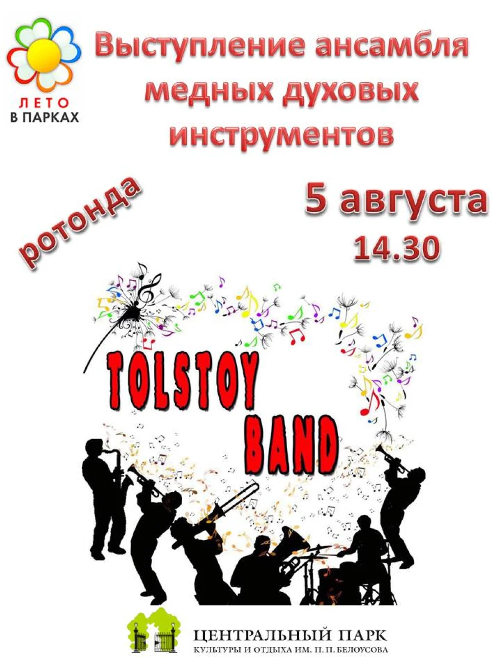 В субботу, 5 августа, в ротонде Центрального парка состоится концерт ансамбля медных духовых инструментов.