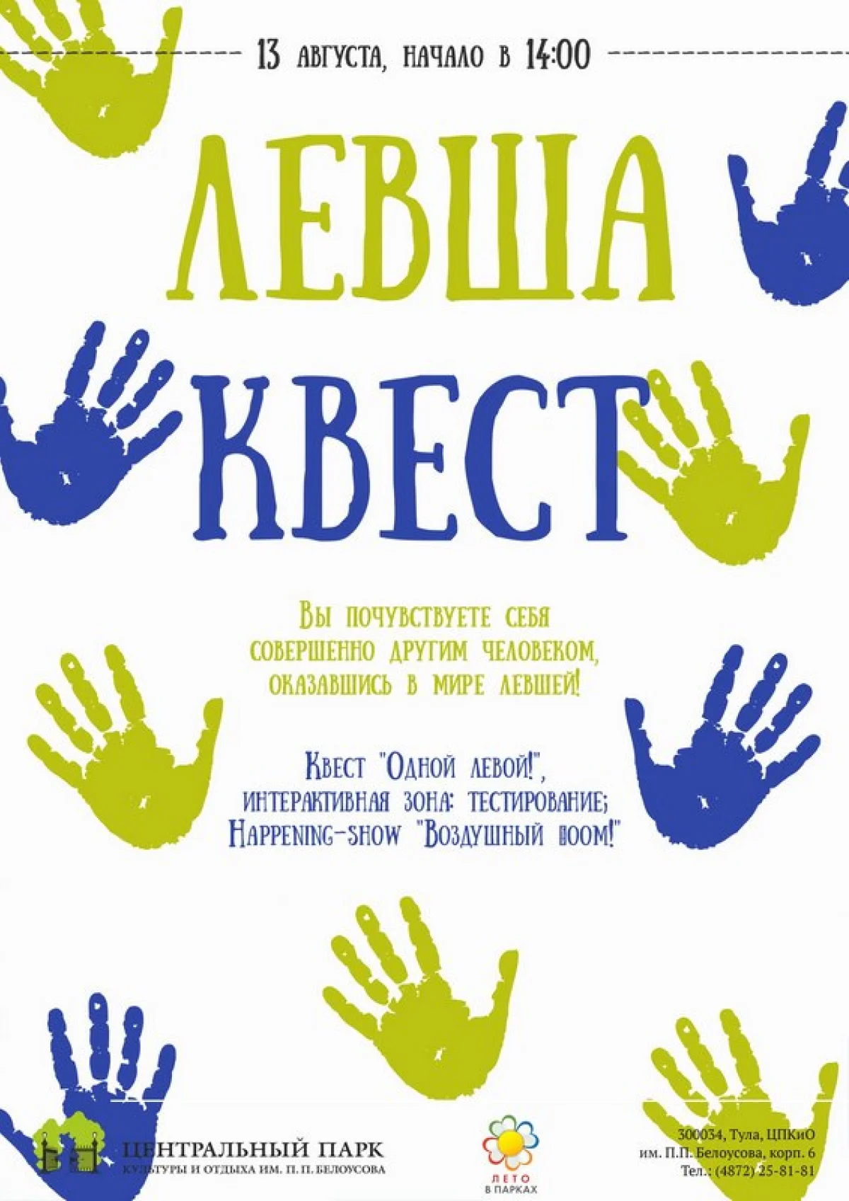 Тульские левши соберутся 13 августа в ЦПКиО им. Белоусова, чтобы продемонстрировать свои способности.