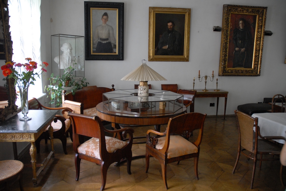 Л. Н. Толстого со всей его подлинной обстановкой, дом Кузьминских, где располагается литературный музей, дом Волконских, могила