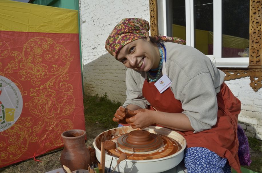 Работа за гончарным кругом кипит. Заинтересованные туляки вместе с осторожным сентябрьским солнцем следят за появлением новых ярко-рыжих сосудов. Гончар Александра Гунькова успевает и формировать новую посуду, и делиться советами о том, как правильно вымачивать глину перед тем, как сесть за станок.
