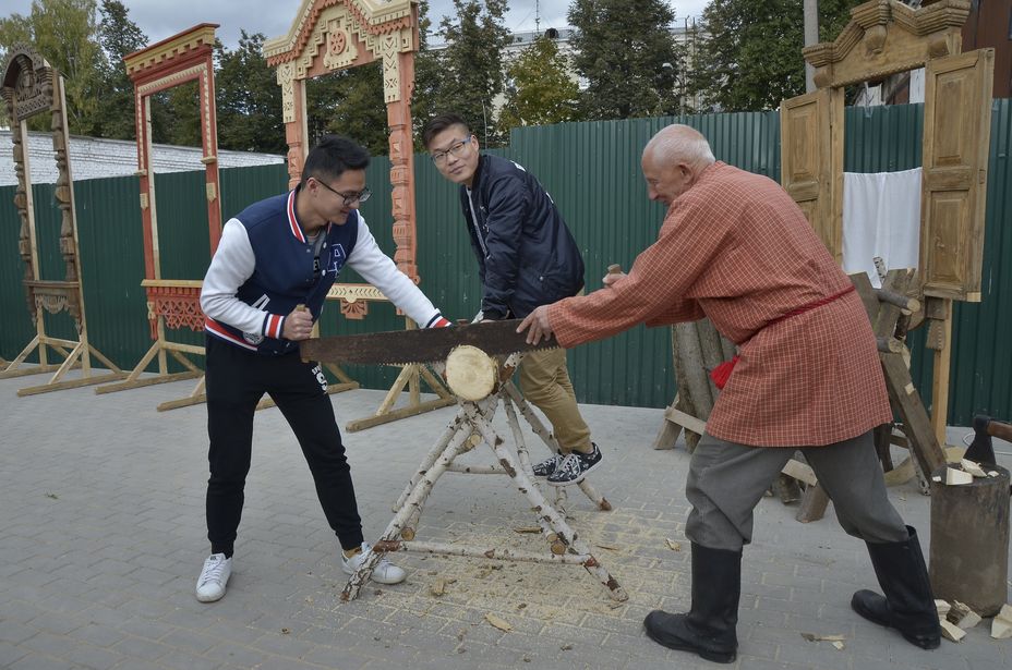 Здесь забавы разного толка, в которых участвуют и дети, и взрослые, и иностранцы. Студент ТулГУ Цию Чжэньюань,