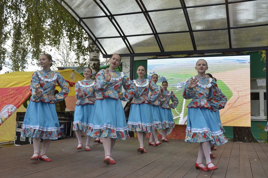 А в это время на сцене поют и пляшут. Рядом с ней дети играют в русский баскетбол – пытаются попасть мотком