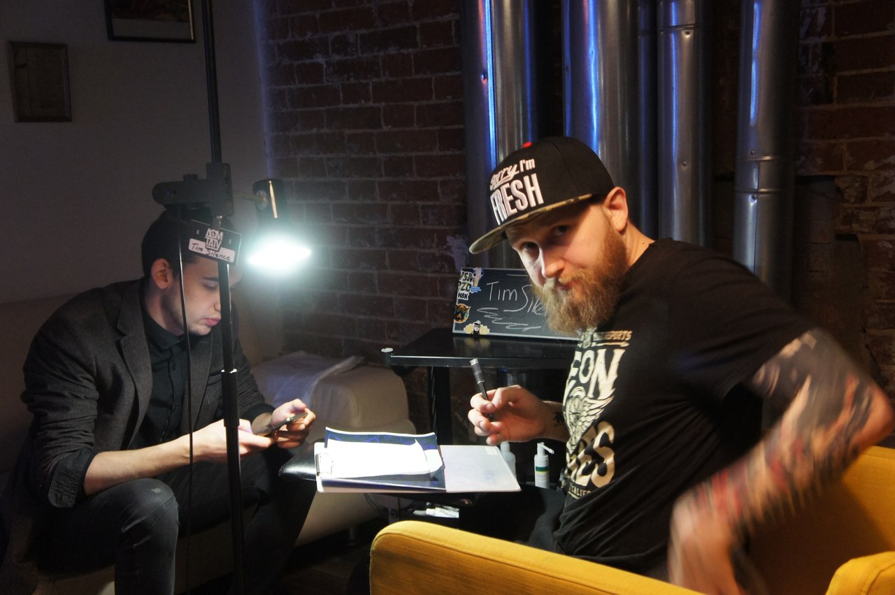 К сожалению, застать нужного мастера корреспондент "Центра71" не смог, так как некоторые участники едут издалека после рабочей смены в салоне. Николай «Восток откос», возможно, прибыл в бар ночью, так что интервью со знаменитым в узких кругах мастером обложек для гаражной инди – рок группы Sonic death и татуировщиком, к сожалению, не состоялось.