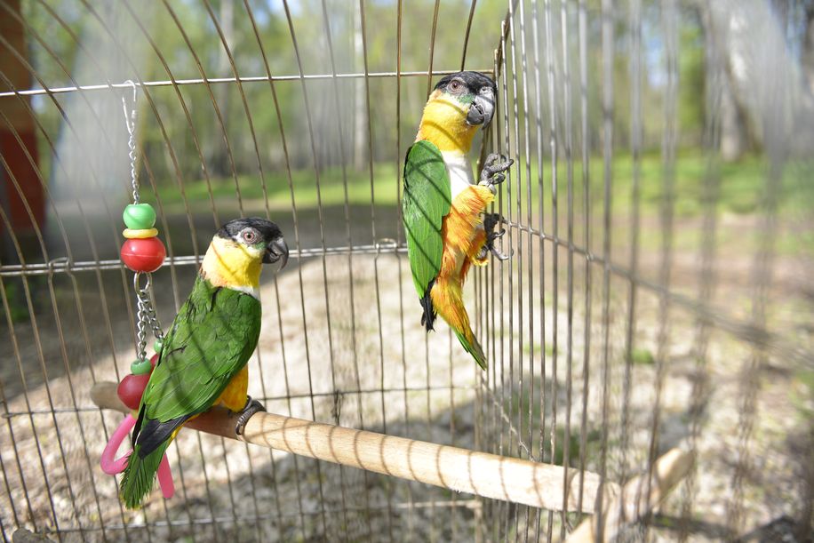 Пара черношапочных каиков – старожилы зооуголка. Эти птицы были пойманы в естественных условиях, а в Тулу попали из Калужского питомника. Вид птицы довольно примечательный. На голове как будто одета шапочка чёрного цвета. Попугай породы Калита – самый старый в зоопарке. Птице - 25 лет. Несмотря на солидный возраст он очень подвижен и голосист.