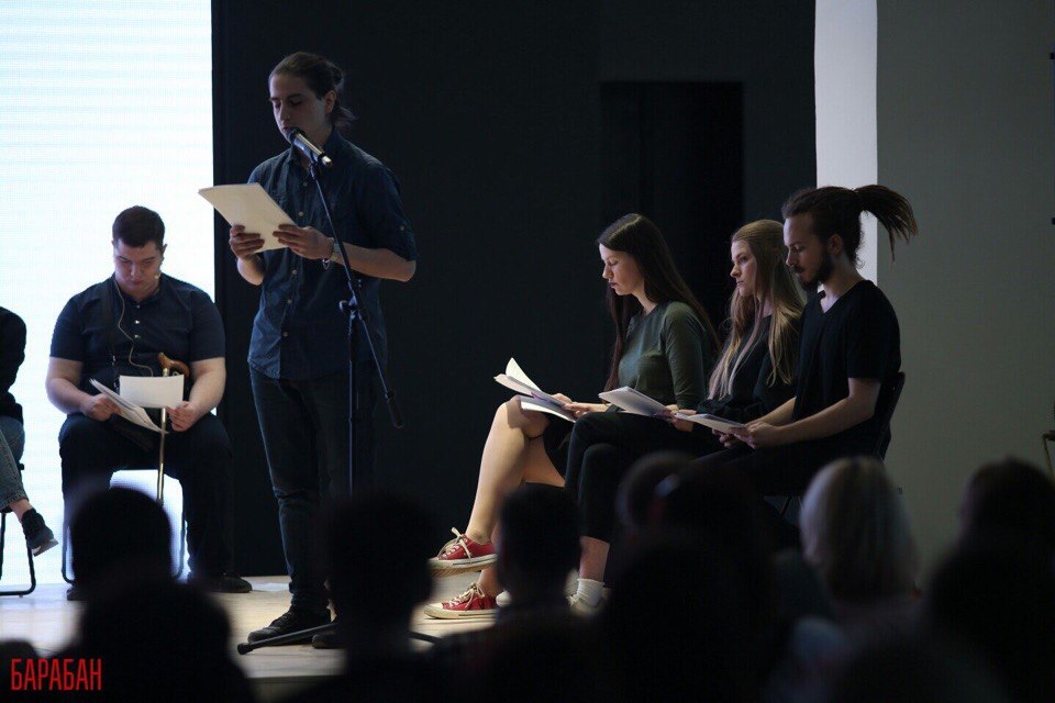 К тому же, жанр «театральной читки» - прочтения пьесы, где главное — это сам текст. Нет декораций, костюмов и эффектов. Только сцена, актеры, которые читают текст и их виденье персонажей. Близок не каждому. Хоть для меня это не первый опыт участия в театральных постановках, примерно за час до начала мои ноги стали ватными, а зубы настукивали ритм не хуже чечеточников. Женя подошел ко мне и сказал: «Когда тебя «забирает» страх, важно не оставаться одному и увлечься разговором.»