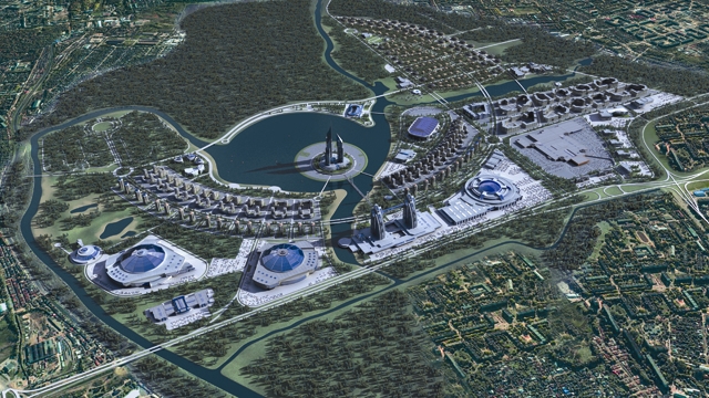 Впрочем, похоже, что «морская» идея по-прежнему бередила умы создателей нового амбициозного проекта. Как никак, Ривьера — это в оригинальном смысле французско-итальянское побережье Лигурийского моря. Поэтому в центре нового района предусматривалась искусственная водная гладь площадью более 56,3 гектара, которая бы обрамляла идеологическое ядро «Тульской Ривьеры» — Бизнес-Сити — остров, возведенный на искусственной платформе размером около 10 га, где разместились бы ретейл-парк, офисный и конгресс-центры, гостиничный городок.