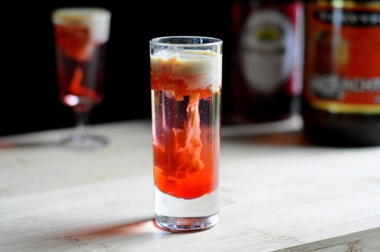 Мягкий и в меру сладкий коктейль, изюминкой которого является как раз оформление при подаче. Потребуется 40 мл персикового ликера, 5 мл (столовая ложка) гренадина, 10 мл сливочного ликера.