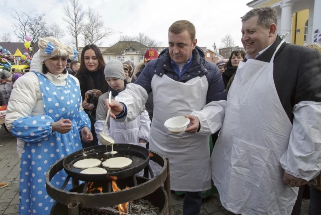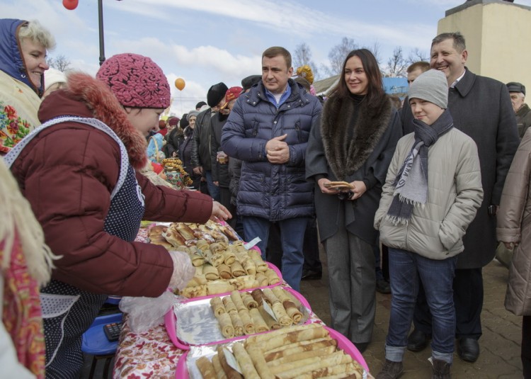 13 марта в городе Суворове Тульской области в рио Губернатора Тульской области Алексей Дюмин принял участие в народных гуляниях, посвященных Масленице. На главной площади Суворова Алексей Дюмин с супругой Ольгой и сыном Никитой осмотрели игровые и интерактивные площадки, познакомились с участниками командных соревнований по приготовлению ухи и выпеканию блинов, приняли участие в дегустации и пообщались с жителями, пришедшими на праздник.