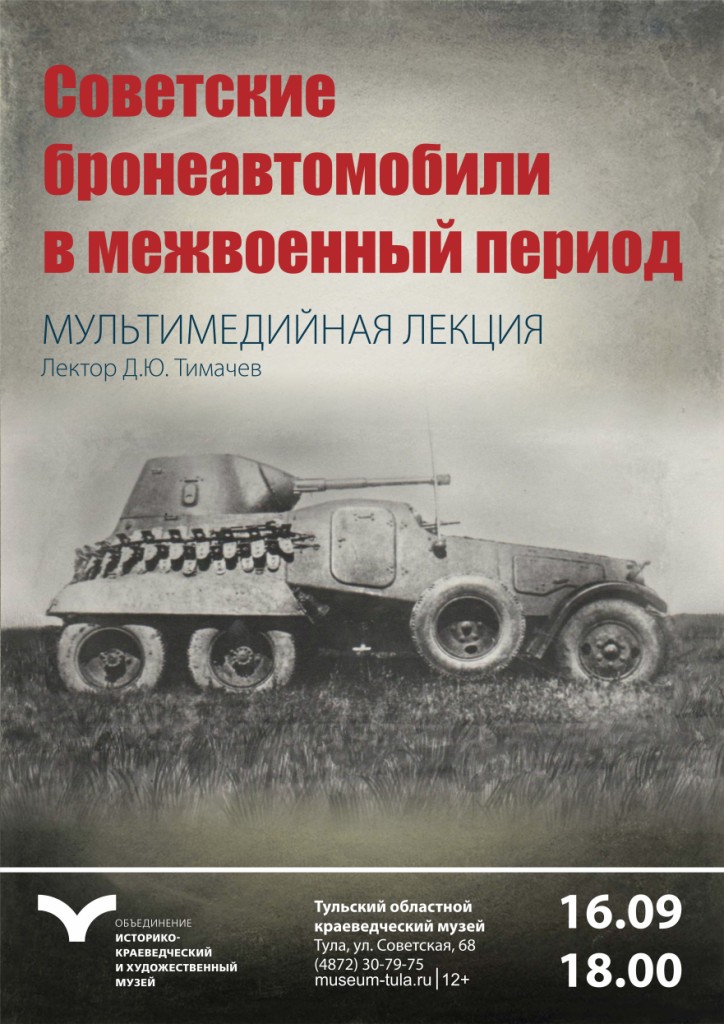 16 сентября в 18.00 в Тульском областном краеведческом музее пройдет мультимедийная лекция «Советские бронеавтомобили в межвоенный период».
