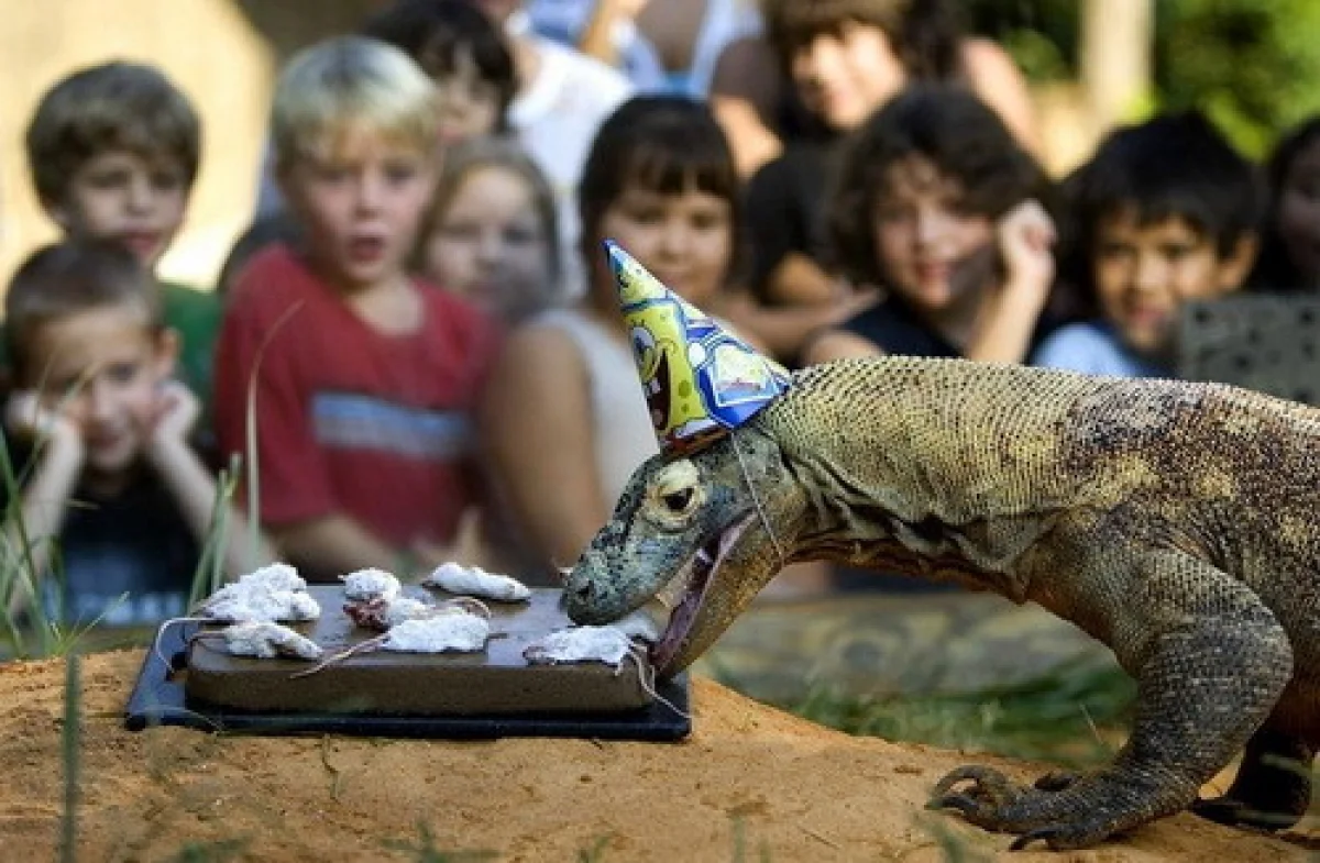 Традиционная праздничная программа возле входа в зоопарк, у статуи динозавра, именуемого в народе Памятником тёще, а то и просто – Тёщей, состоится при хорошей погоде: гостей встречают аниматоры и научное шоу. Ещё раз уточним: погода может внести коррективы. От её капризов мы надёжно защищены только в здании Экзотариума, где интерактивная программа с 12.00 до 16.00 будет включать и показательные кормления, и ответы на вопросы посетителей, и общение с животными.