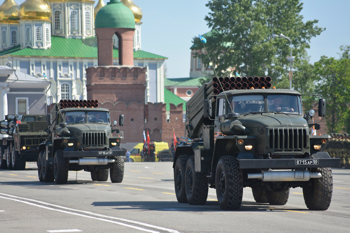 В параде прошли более 500 человек. Также по тульским улицам проехали свыше 50 единиц техники.
