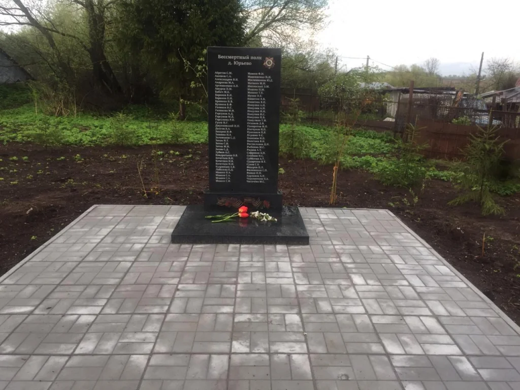 В тульской деревне Юрьево к 75-летию Победы установили стелу в честь погибших в Великой Отечественной войне родственников и земляков. На стеле — 70 фамилий.