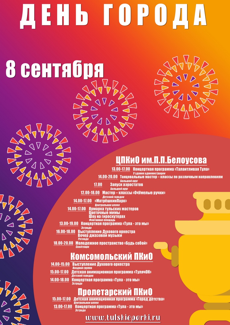 В День рождения Тулы, 8 сентября, городские парки подготовили массу интересных мероприятий: