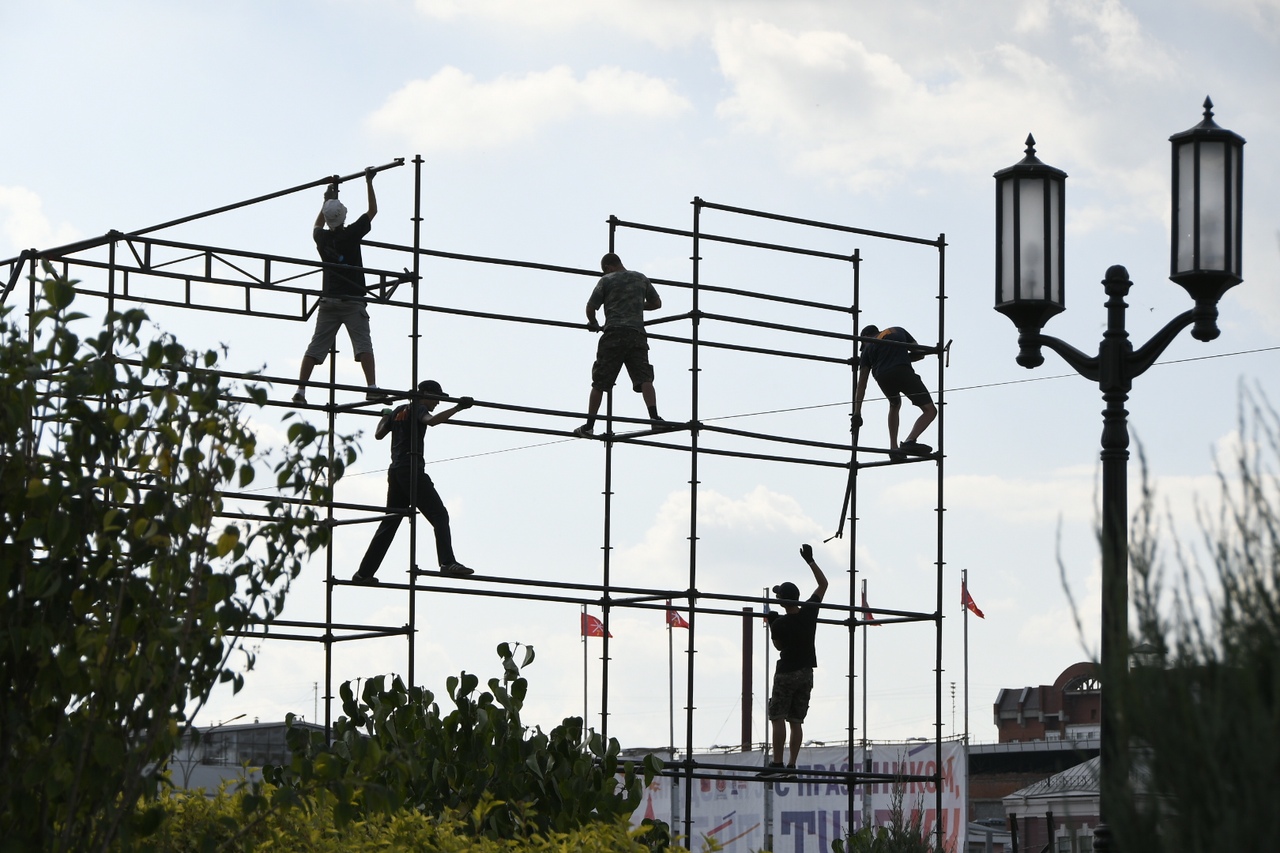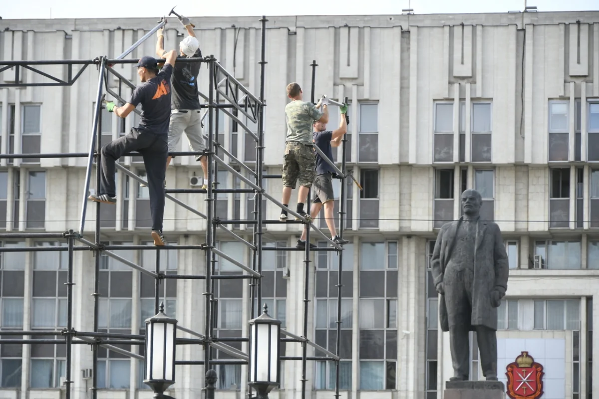 В Туле на площади Ленина начали монтировать сцену ко Дню города