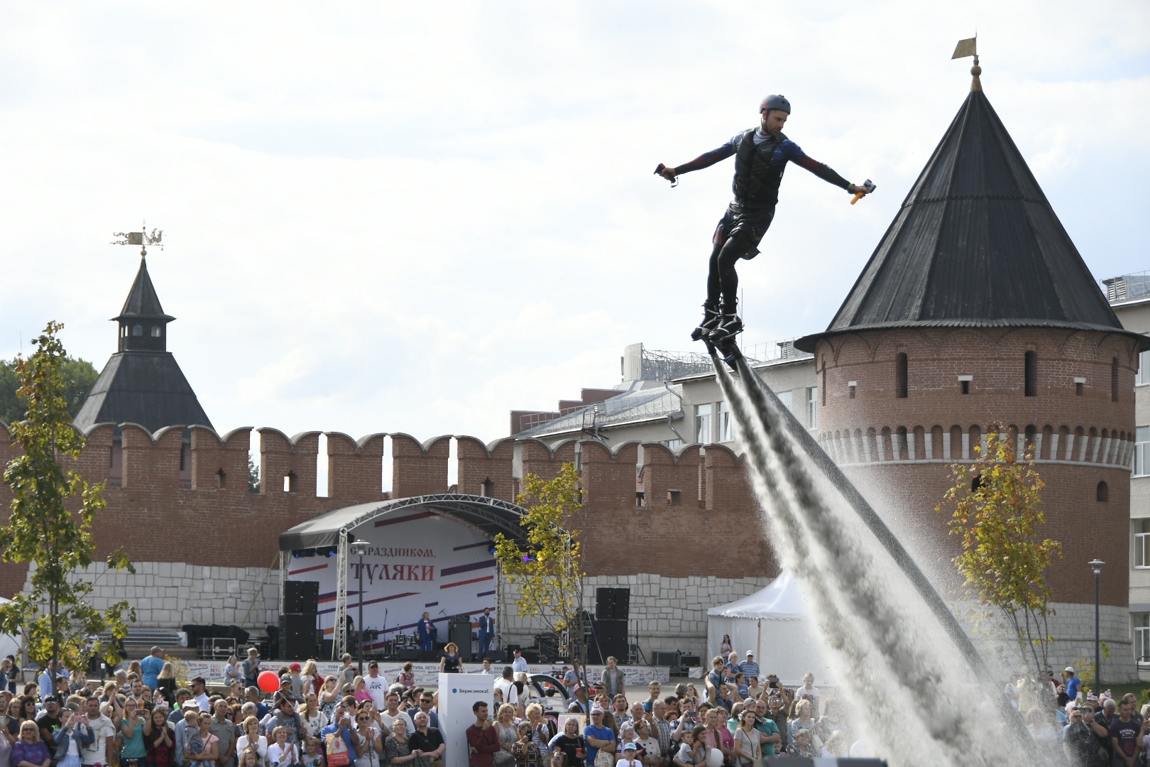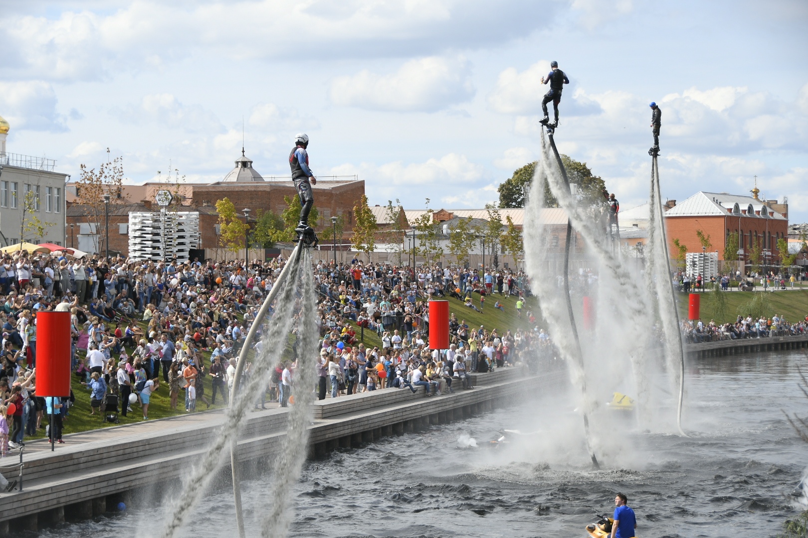 В Туле на праздничных мероприятиях, посвященных Дню города, выступила сборная команда России по флайборду.