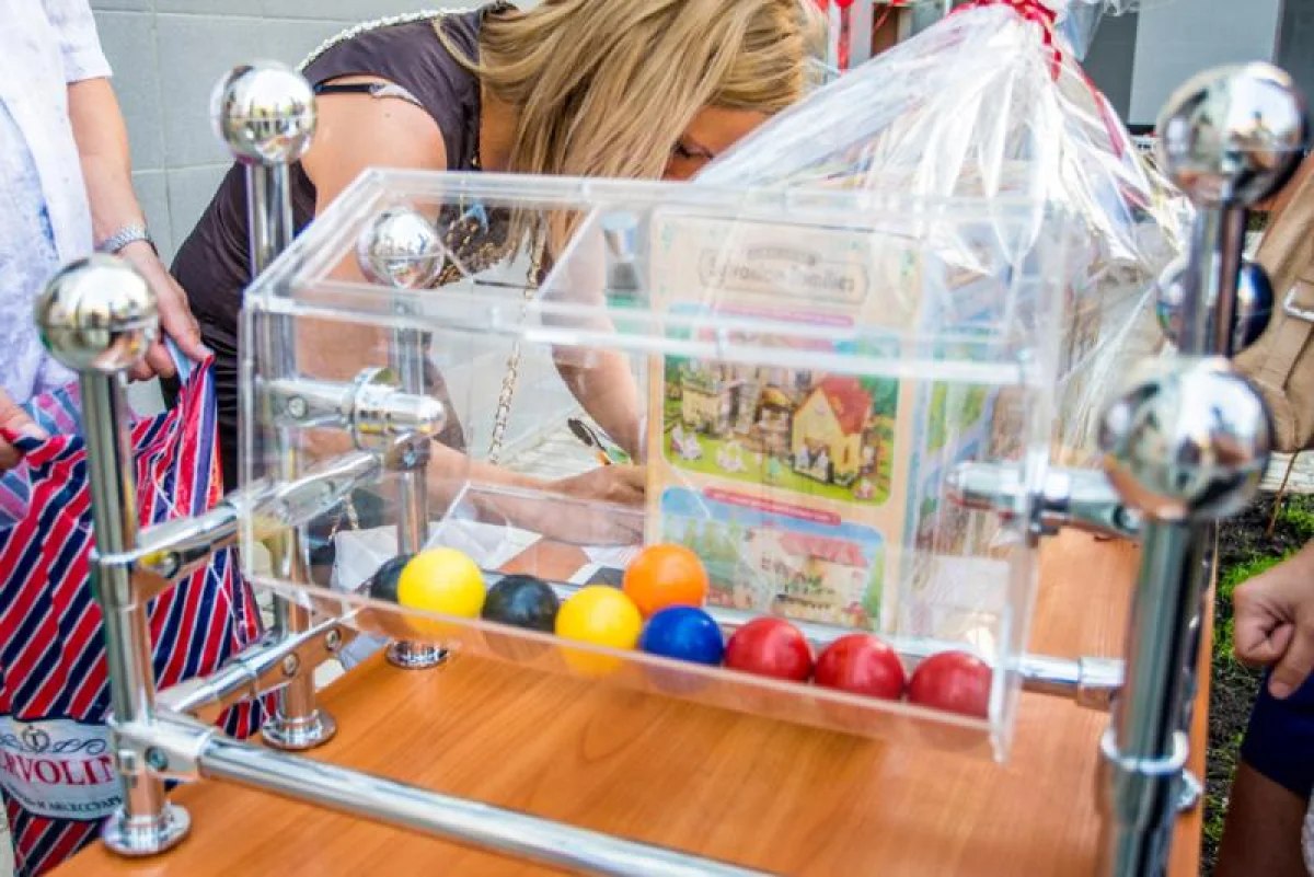 Победят те, кто вытянет числа 8, 7 или 0. Эти люди получат на память подарки. А для получения главного приза надо вытянуть из «лотерейного барабана» число 870.