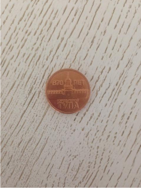 Отметим, на юбилейной "монете счастья" с одной стороны расположилась надпись «870 лет Туле» и изображение Одоевской башни Тульского кремля, на оборотной – надпись «Совет да любовь» и два сердечка.
