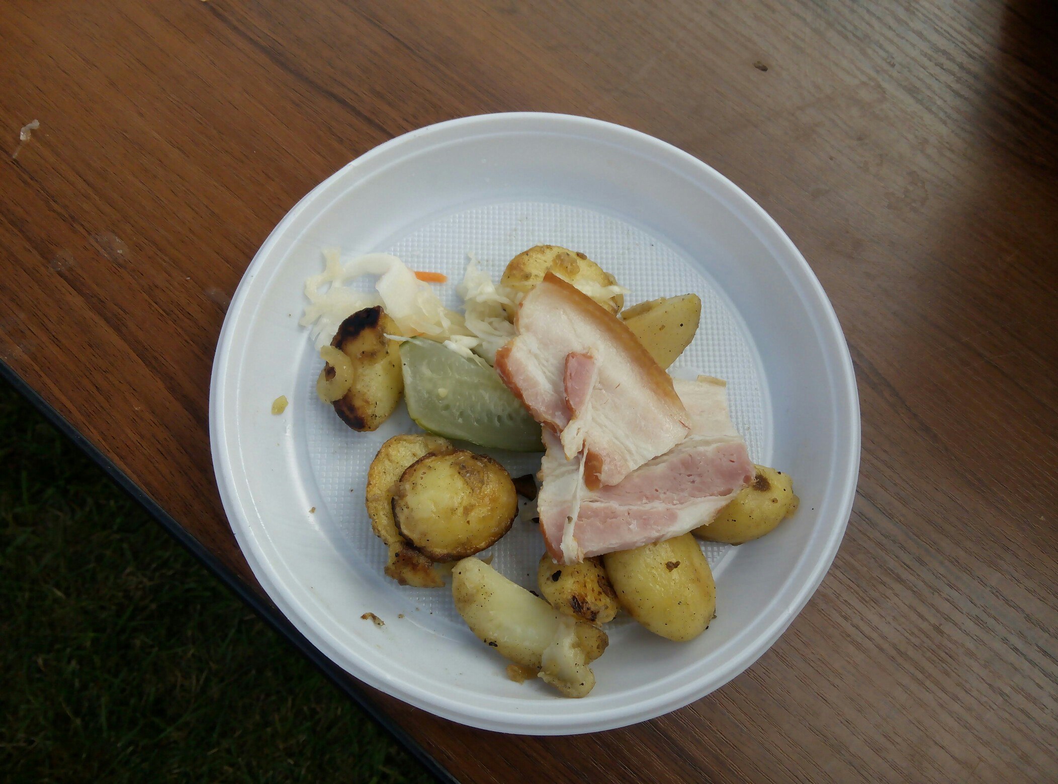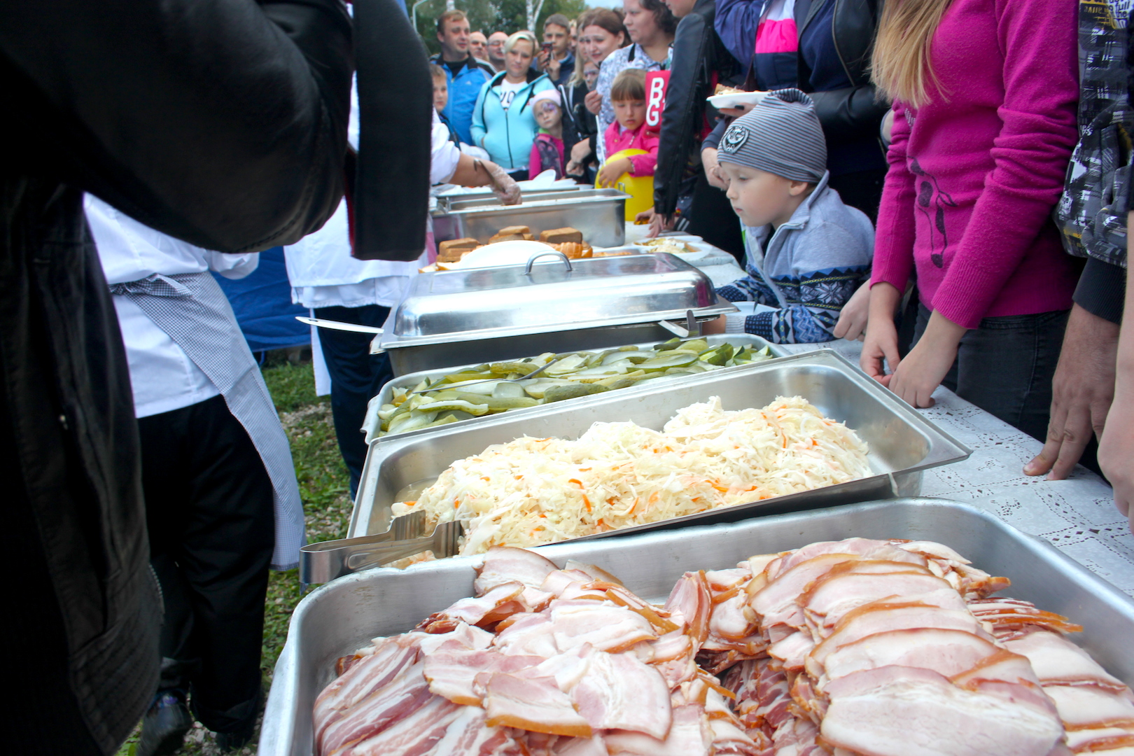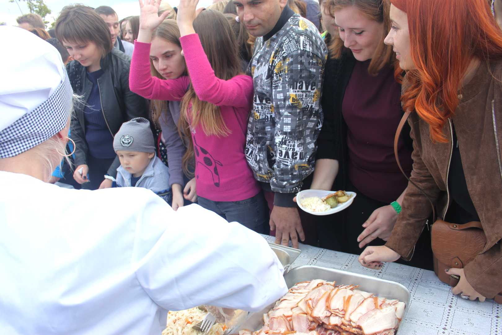 Но картошки хватило всем желающим, даже еще осталось. Блюдо дополняли тонко нарезанными ломтиками ветчины, хрустящими солеными огурчиками и квашеной капустной. Туляки уминали угощение за обе щеки, да еще и на свежем воздухе! Фудкорт с шашлыком и сосисками, расположенный поблизости, дожидался своих посетителей…