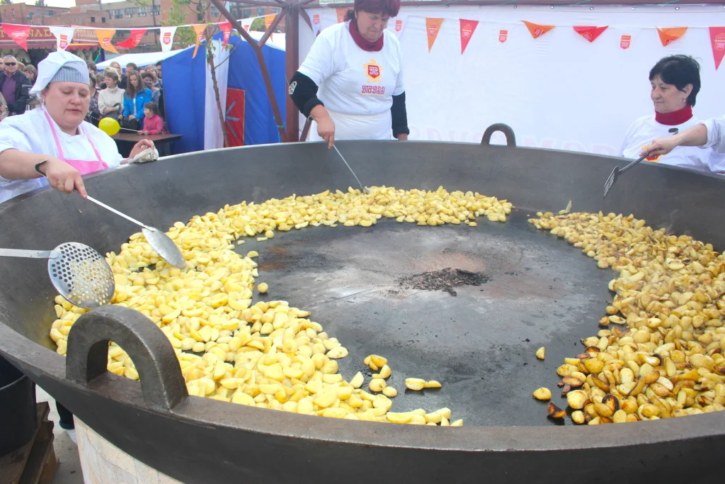 Ради заветной порции туляки выстраивались в очереди и даже штурмовали ограждение. Понятно, что картошку можно и дома пожарить, но тут-то совсем другое – сковорода, весом 1,7 тонны, изготовленная специально по случаю, огромная печь, лопатка размером с весло, повара в белых колпаках, суетящиеся вокруг готовящегося блюда, как в сказке о прожорливом великане. А главное – аппетитный запах, безжалостно бередящий вкусовые рецепторы, разлетающийся далеко по набережной.