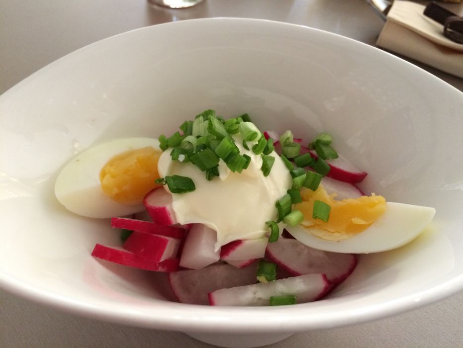 Салат «Летний»: порезанные редиска и огурчик заправлены сметаной. Салат как салат. Больше об этом блюде мне сказать нечего.