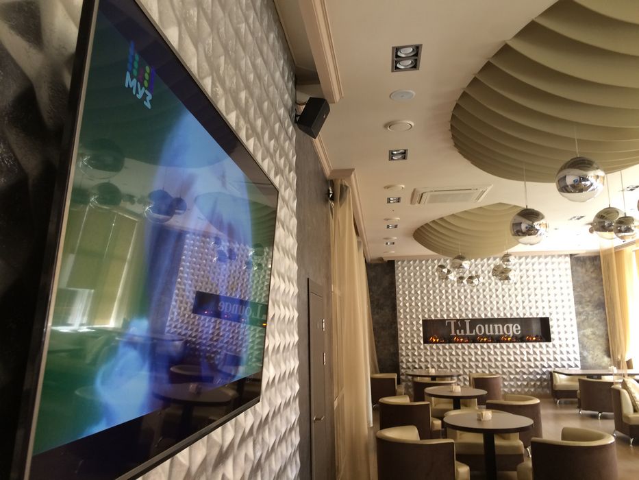 В зале царит неприлично пафосная атмосфера. Помещение никак не зонировано, а широкие столы вкупе с крупными буквами TuLounge на стене больше напоминают переговорную компании по дизайну интерьеров.