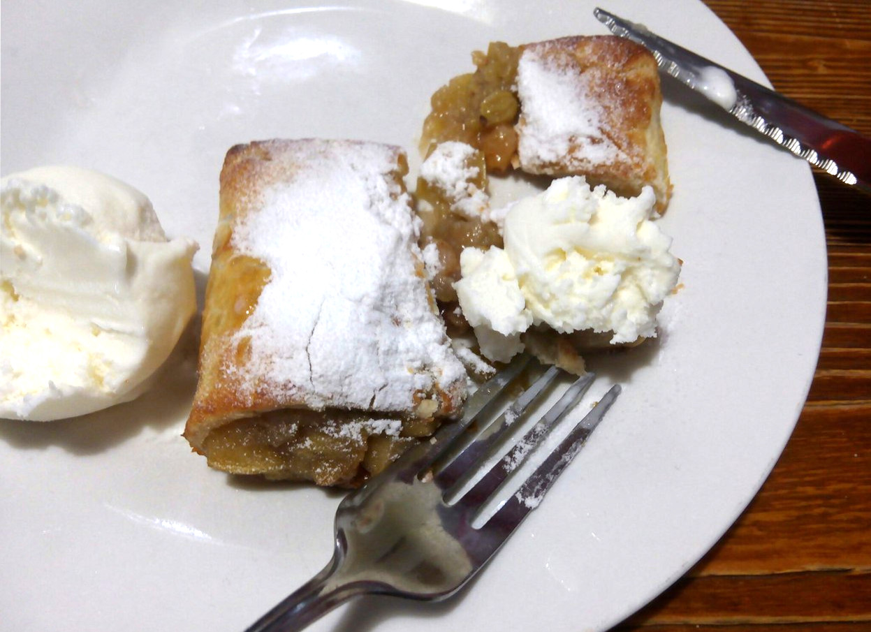 Что сказать напоследок? Яблочный штрудель, да и любой другой штрудель - блюдо, которое можно только улучшить и почти нельзя испортить, хотя и бывали прецеденты. Истинное удовольствие от этого десерта шпион получил лишь в одном заведении.