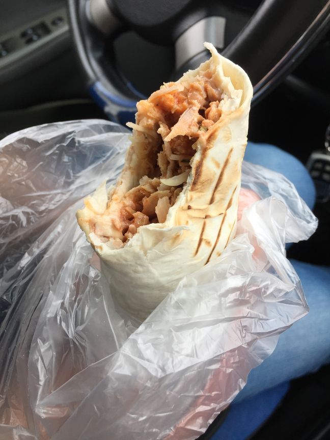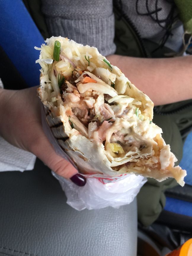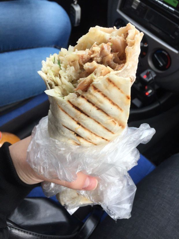 что лаваш прорвется и содержимое блюда окажется у тебя на воротнике. На вкус такая шаурма должна понравиться вегетарианцам,