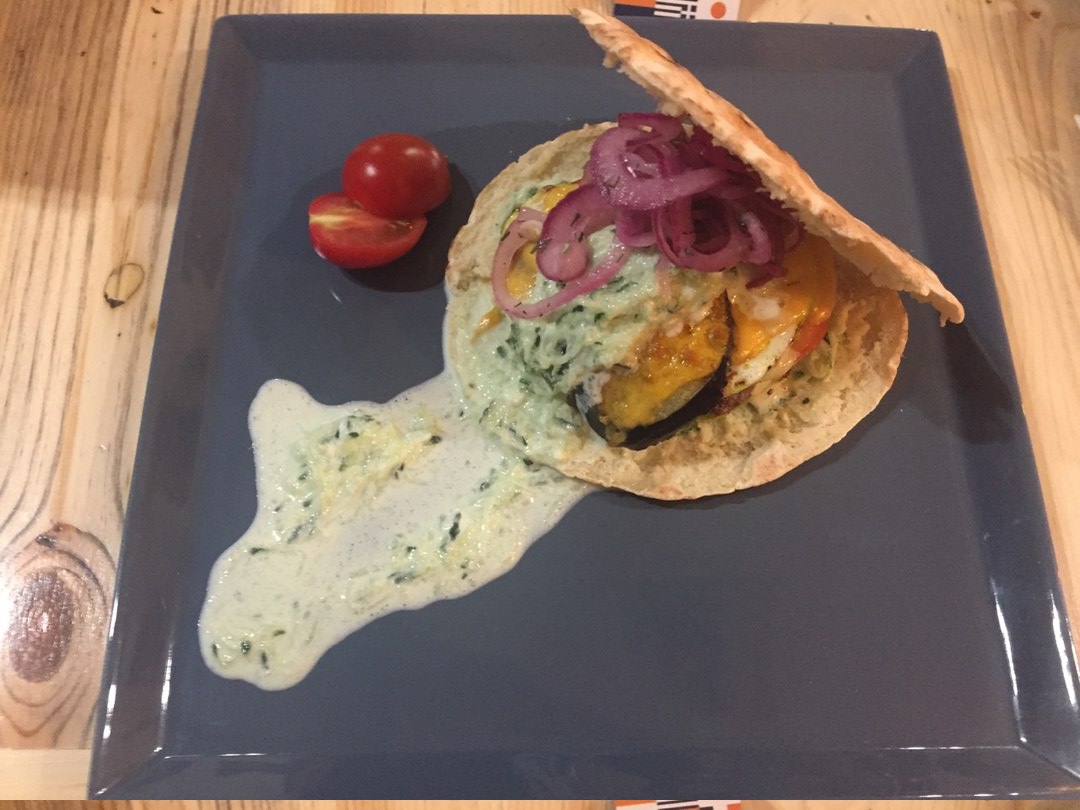 Говядина отменная. Мясо сочное, не пережаренное. Овощи приятно оттеняют его вкус. А вот лепешка суховата. Неприятно