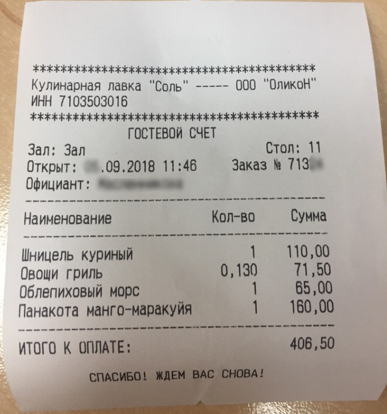 Итого неплотный обед в «СОЛИ»: 406, 50 рублей. Шпион не наелся. Да и для кафе-кулинарии, где во главе стоит самообслуживание, цены выше среднего.