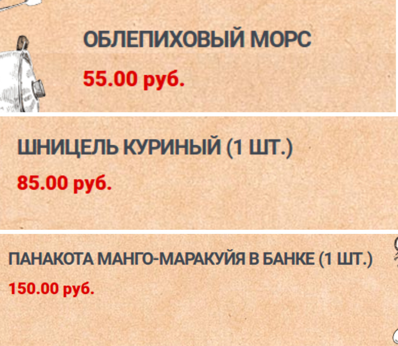 Цены в жизни от опубликованных на сайте заведения отличаются. Так что заранее рассчитать бюджет, в который вам обойдется посещение кафе-кулинарии, вряд ли получится. Например, куриный шницель вместо обещанных на сайте 85 рублей обойдется в 110 кровных за штуку. Панакота манго-маракуйя — вместо 150 рублей в 160 рублей, за облепиховый морс придется заплатить 65 рублей вместо заявленных 55 рублей. Вроде мелочь, но осадок неприятный. Проследить динамику цен на овощи гриль не получится. Такой позиции в меню на сайте нет. За 130 гр шпион заплатил 71,50 рублей.